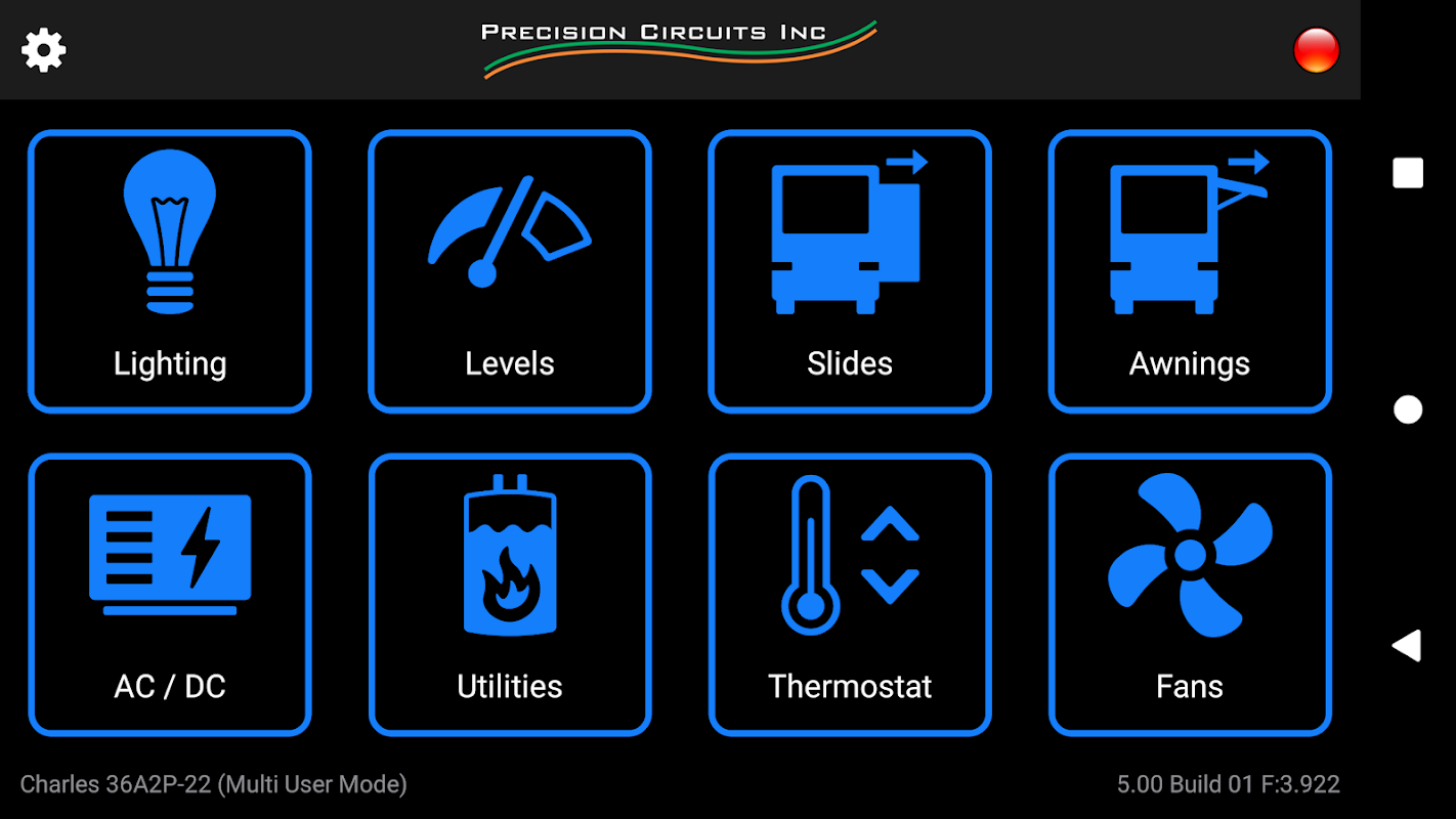Se o seu RV está equipado com o sistema Precision Plex e módulo de módulo sem fio, este aplicativo permite que você use seu telefone ou tablet para monitorar e controlar muitas funções, incluindo;