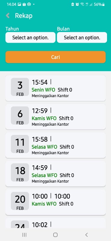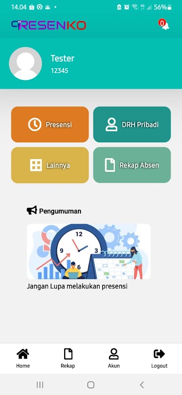 Aplicação de presença e serviço de atendimento de funcionários
