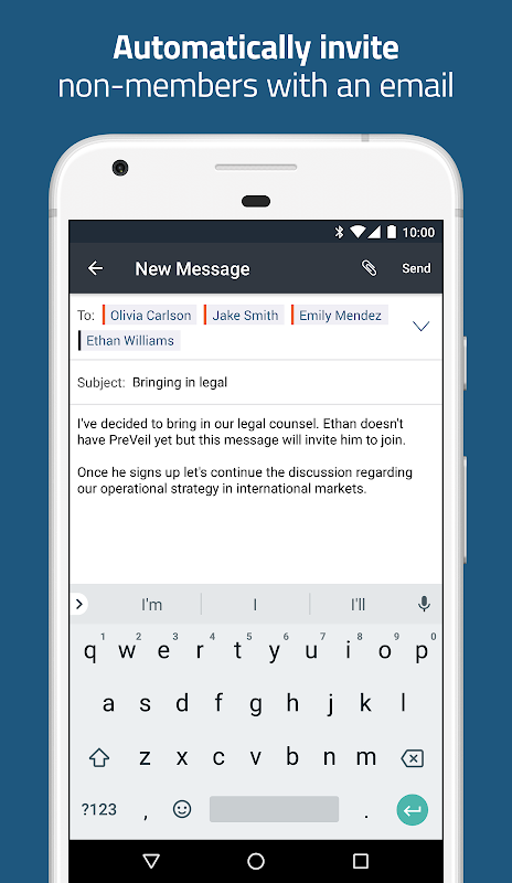 Se você enviar um e-mail ou compartilhar uma pasta com alguém que não seja membro do PreVeil, eles serão automaticamente convidados a participar gratuitamente. Alternativamente, você pode incentivá-los a se inscrever no PreVeil visitando www.preveil.com ou baixando do aplicativo móvel PreVeil.