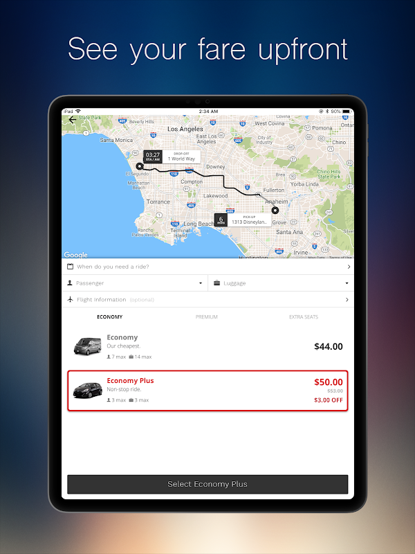 O Prime Time Rideshare não cobra comissão, então seu motorista fica com 100% do valor da corrida. Assim, você tem a garantia de que seu motorista quer o seu negócio e o tratará bem.