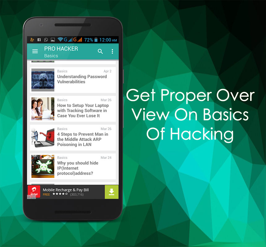 Esta aplicação tutorial Hacking não é só para aprender que mantém você conectado com as últimas notícias de hacking incluindo os hacks hardware, hacks gadgets e categorias mais interessantes, incluindo hackers truques e hacking dicas que também pode vir a calhar depois de aprender a pirataria