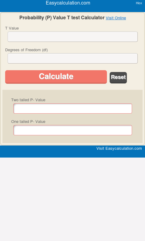 Calculator Distribuição T para encontrar o valor de probabilidade (valor p)