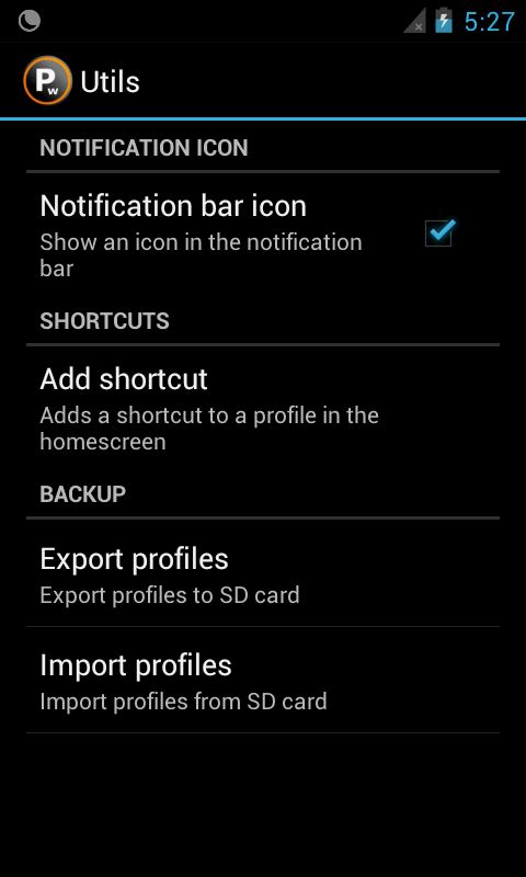 Also, if you don't want to use the widget, there's the option to add shortcuts to activate the profiles to the homescreen.