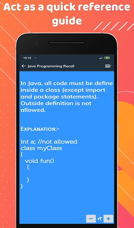 Build your programming skills in the Java Programming language with the Java Programming Recall App.