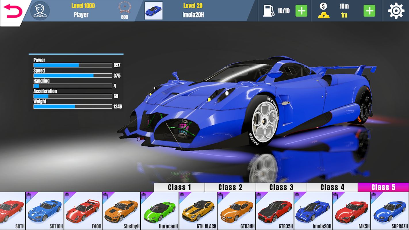 Personalização completa: personalize seus carros completamente para combinar com seu estilo. Torne seu veículo único com cores, pneus, aros, para-choques, capô, espelhos, janelas, assentos, spoilers e atualizações de desempenho.