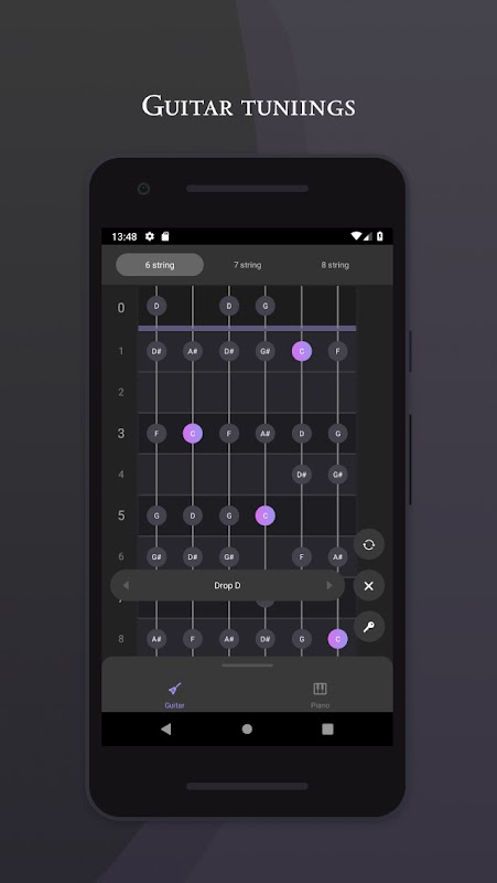 ProScale is an application that will help you learn the scales on your favorite instruments. Learn and memorize the location of notes on a guitar fretboard or piano keyboard.