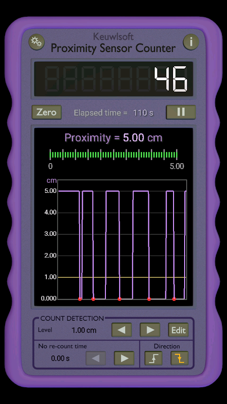 Embora este aplicativo pode ser usado para a contagem, ele também pode ser usado apenas para compreender a capacidade de detecção do sensor de proximidade no seu dispositivo.