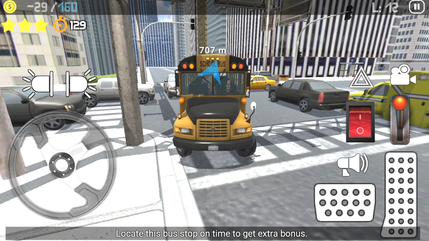 Dirija com cuidado no trânsito e reabasteça a tempo. Dirigir descuidadamente e bater seu ônibus fará com que você perca dinheiro. Obedeça às regras de trânsito e não passe no sinal vermelho. Chegar a tempo em pontos de controle e missões extras dará bônus e dinheiro extras. Desbloqueie novos ônibus com o dinheiro ganho.