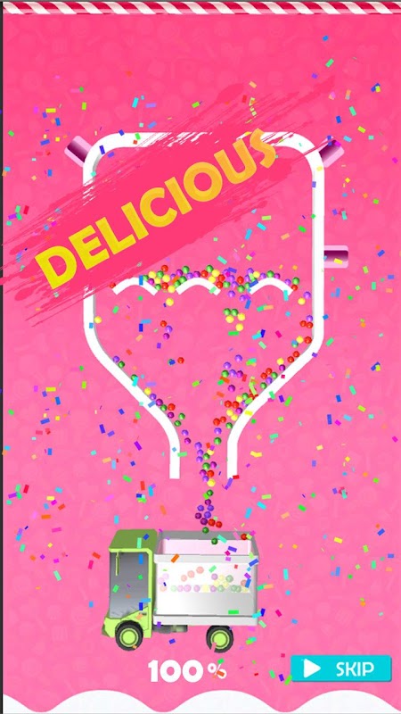 Agora, o truque aqui é puxar os pinos de forma que eles entrem no caminhão, no meio há obstáculos como bombas. sem tocá-los, abra caminho para que os doces caiam puxando os pinos. para que seus amigos usem seu cérebro para puxar os pinos corretamente.