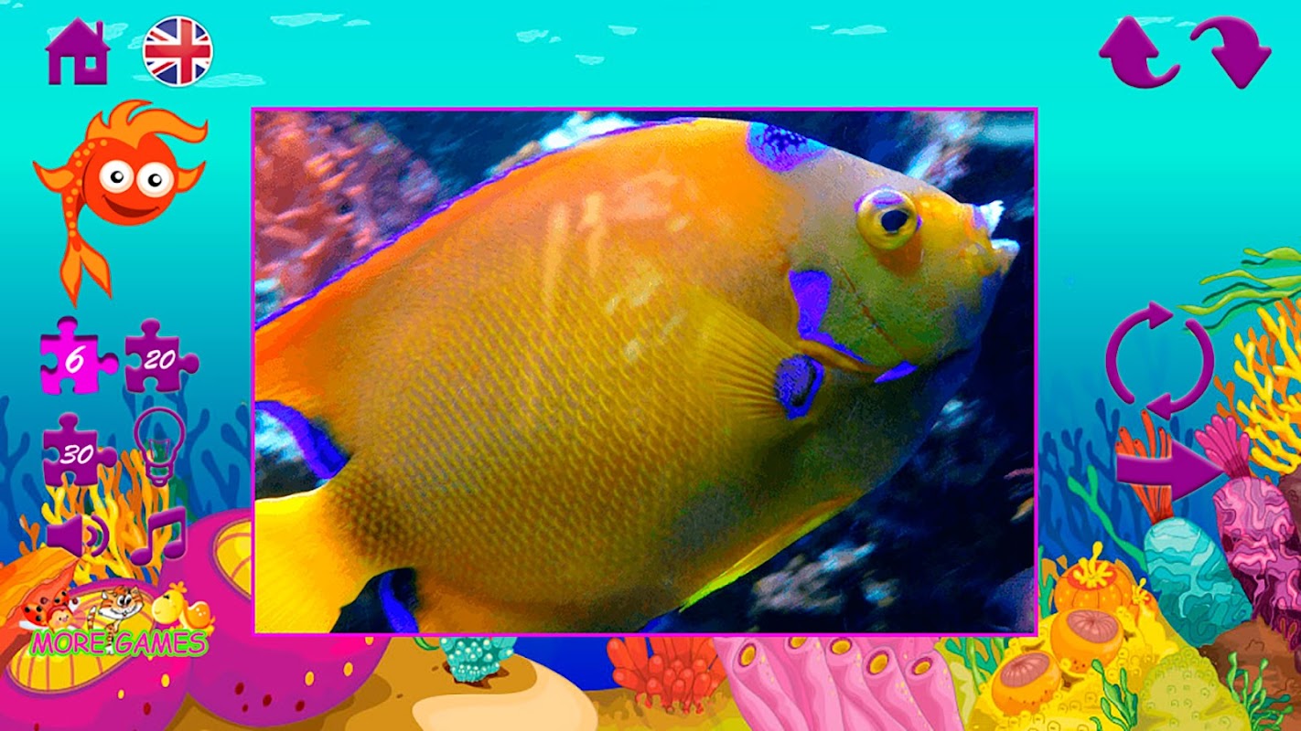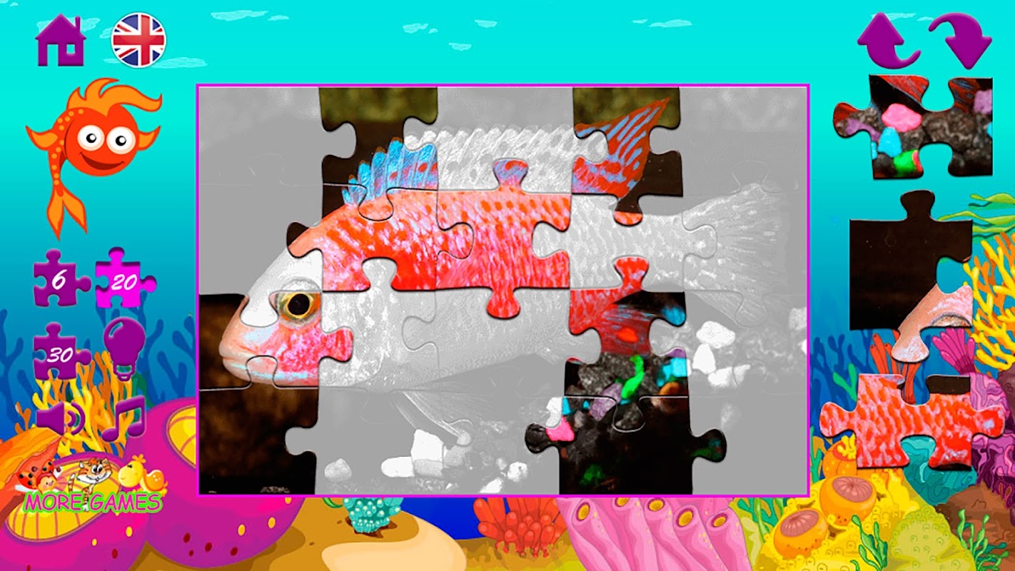 O jogo Fish Puzzles desenvolve a atenção da criança e a ajuda a pensar.
