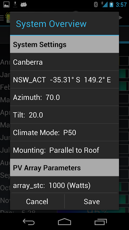 • Variation of Azimuth and Tilt through physical positioning of the smart phone/pad. Lay it on the alternative roof slopes and read the output of a small standard system.