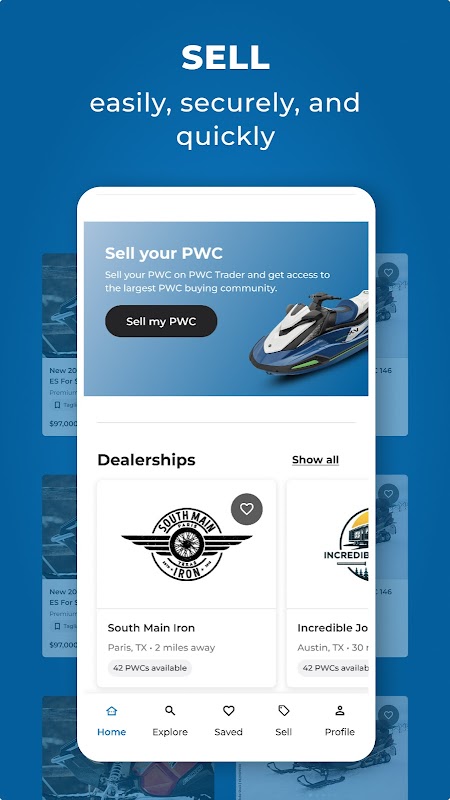 • Você também pode localizar revendedores de jet skis perto de você, obter cotações de seguro e estimar seus pagamentos neste aplicativo.