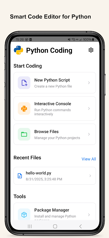 Domine a programação em Python no seu celular e tablet com o Python Coding – um poderoso IDE para Python, voltado para dispositivos móveis, projetado para estudantes, desenvolvedores e entusiastas de dados. Escreva, execute e explore código em Python com um editor avançado, um ambiente de execução completo e tutoriais integrados. Seja para criar scripts de programas simples ou construir modelos de ciência de dados, o Python Coding torna tudo perfeito.