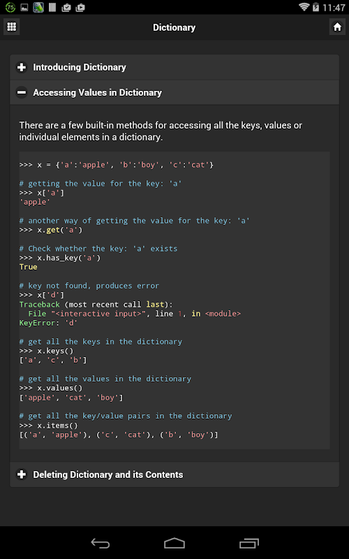 This app is a Quick Reference Guide for Python Programming Language. The guide will be particularly useful for newbies who are trying to get themselves familiarized with python rules and syntaxes.