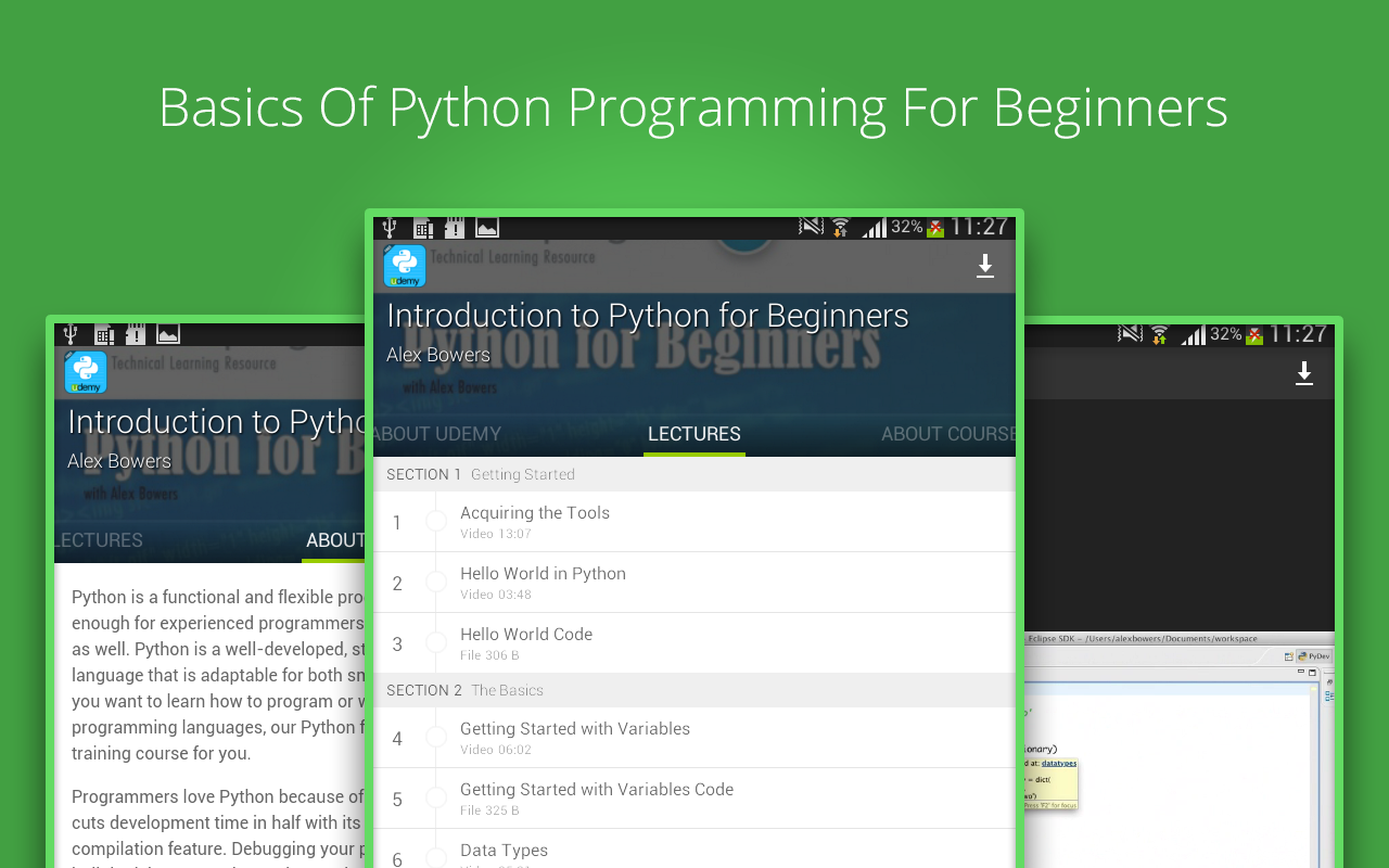 Install the "Python Tutorial for Beginners" app now and join over 4 million students who are already learning on Udemy