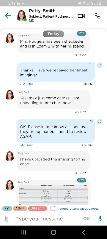 Nossa plataforma de comunicação em saúde preenche a lacuna entre médicos, enfermeiros, pacientes e cuidadores. Seja em um sistema de saúde com múltiplas instalações ou em uma agência de saúde domiciliar em um único local, os médicos podem agora colaborar de forma aberta e eficiente em torno de um único paciente, independentemente dos limites do departamento ou da organização, levando a melhores resultados e maior satisfação do paciente.