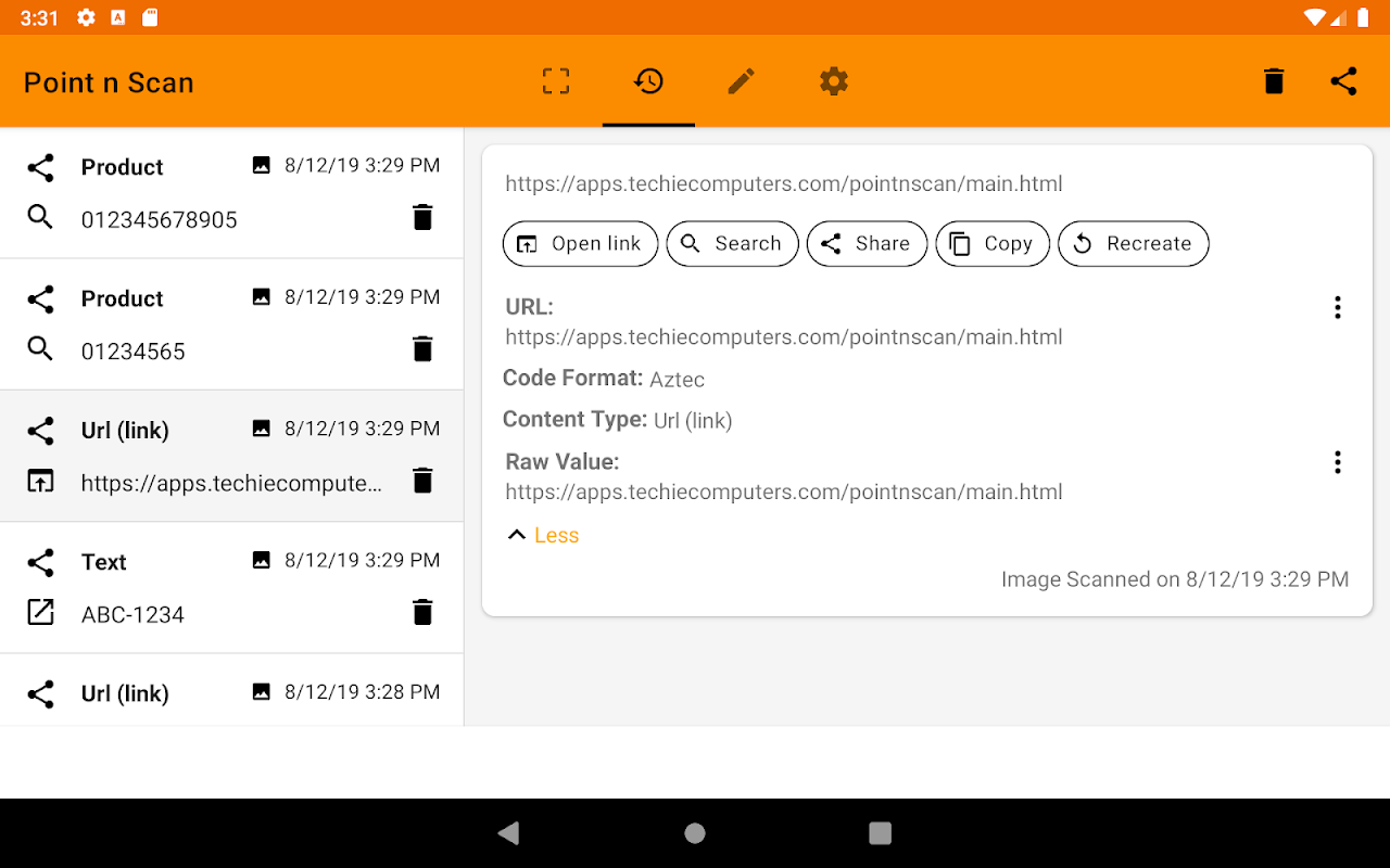 Digitalize uma variedade de códigos usando a câmera ou digitalize um arquivo de imagem existente. Gere QR, Aztec, códigos de barras etc. facilmente com o aplicativo. Histórico que ajuda a recriar códigos que foram digitalizados anteriormente.