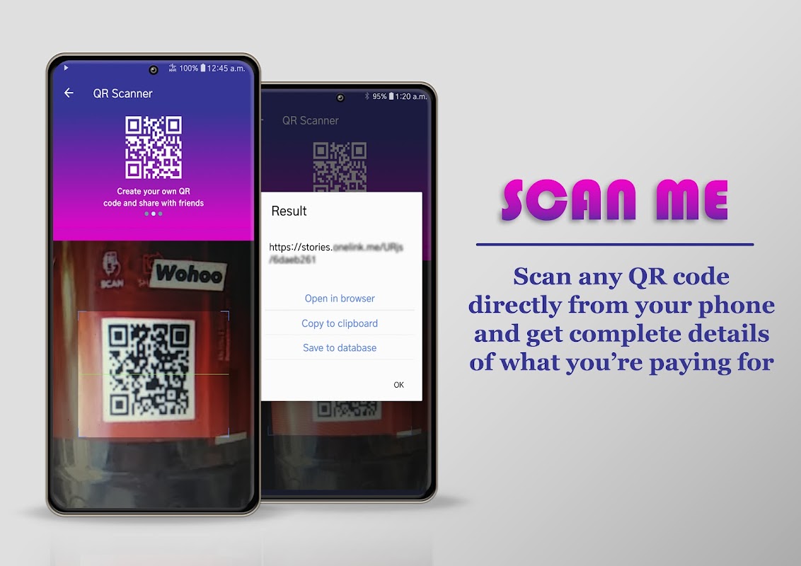 Q Scanner is a QR code and Barcode scanner app. You can scan, create or share QR code or barcodes directly from your smartphone to your friends on social media. Simply open Q Scanner app, point it towards the QR code and that's it. you can save the information to your phone.