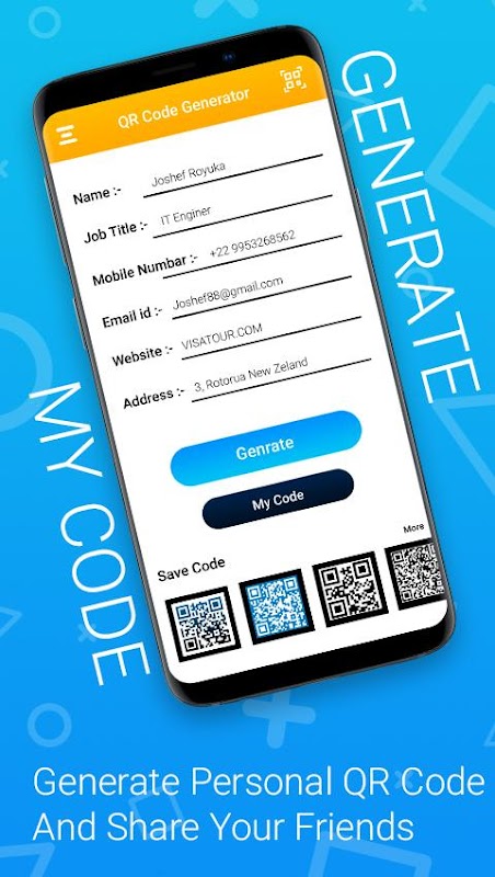 O QR Code Generator and Scanner é um aplicativo básico e valioso que faz com que você crie sua própria imagem personalizada de código de barras. você pode utilizar essa imagem de etiqueta padronizada para aviso, compartilhar dados e se transformar em um pedaço do mundo de vanguarda.