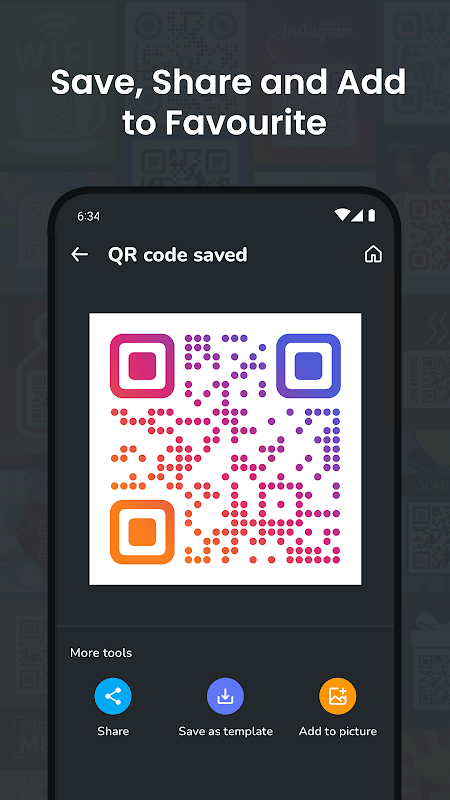 QR Code Generator - Fast & Easy vem com modelos prontos e bem projetados, portanto, você pode gerar códigos QR especiais e impressionantes muito rapidamente.