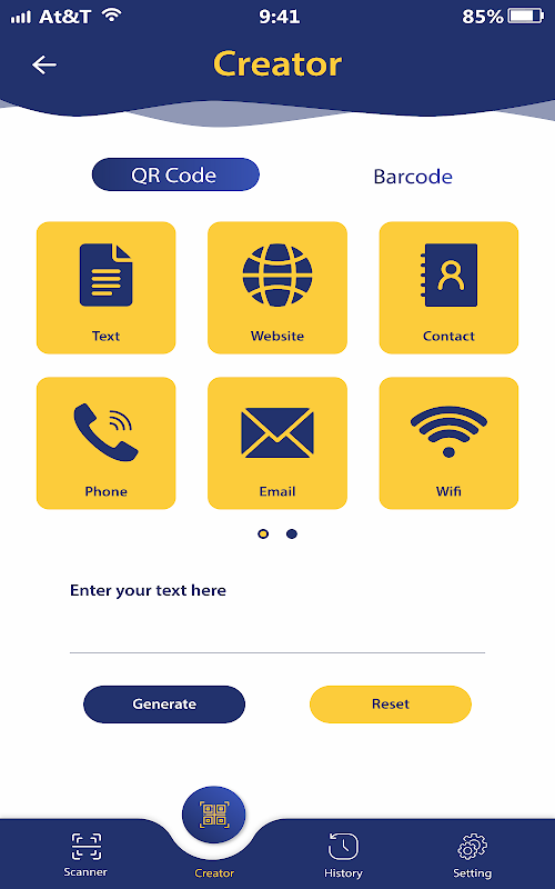 1. Open the Generator tab to find the all the formats. Click on format you want to generate enter the details and generate qr or barcode.