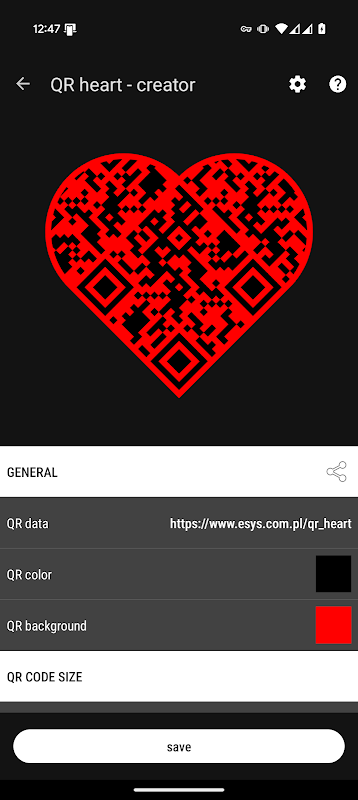 Este aplicativo permite que você gere lindos códigos QR em formato de coração