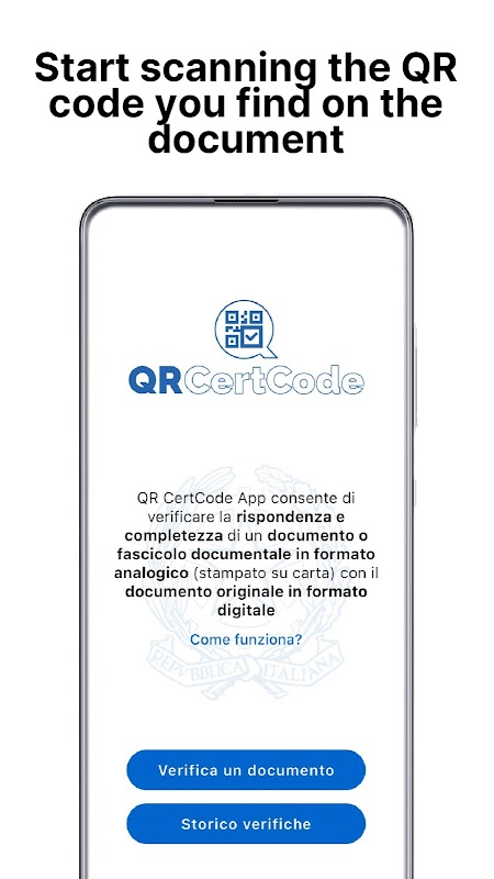 O aplicativo QrCertCode permite que você verifique a precisão e a integridade de um documento