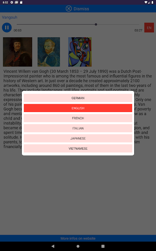 Explore museus como nunca antes com nosso aplicativo inovador! Use o aplicativo para digitalizar códigos QRSimple para desbloquear um mundo de informações sobre artefatos e exposições. Personalize sua experiência com opções de reprodução automática de guias de áudio ou ajuste de tamanho de texto para facilitar a leitura. Mergulhe na história com descrições detalhadas, narrativas em áudio, imagens e texto, tudo ao seu alcance. Melhore suas visitas ao museu e descubra as histórias por trás de cada artefato com nosso aplicativo intuitivo!