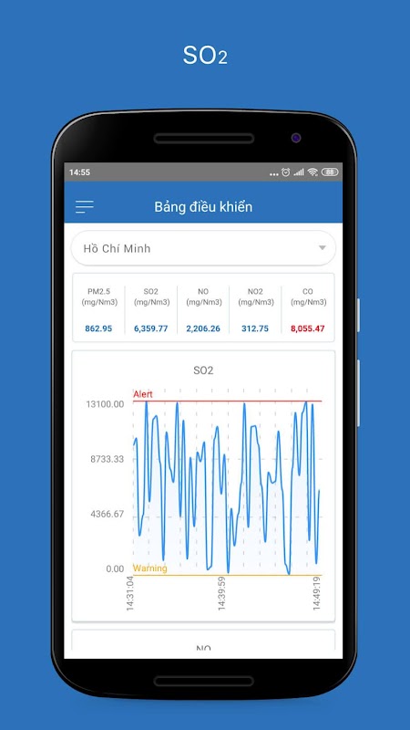 Ứng dụng cho phép theo dõi chỉ số môi trường cho nhà máy sản xuất ở Việt Nam. Bộ phận quản lý có thể theo dõi những chỉ số về môi trường realtime, đồng thời nhận những cảnh báo tức thời nếu có những chỉ số vượt mức tiêu chuẩn.
