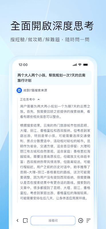 1. Busca de IA: ative totalmente o "pensamento profundo" para resolver facilmente problemas complexos! Basta perguntar a qualquer momento e não haverá apenas boas respostas, mas também boas soluções.