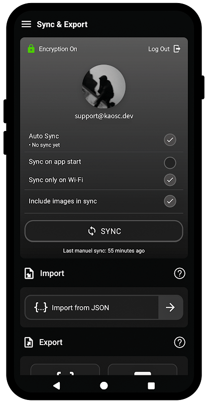 · Você também pode fazer backup de seus itens exportando-os e importando-os como arquivo JSON se preferir não usar a opção de backup do Google Drive.