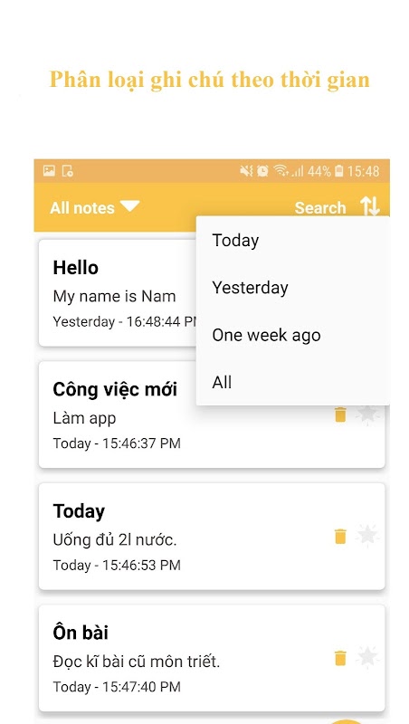 * Sort notes by date.