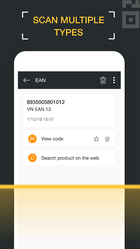 QR Scanner can scan and read all QR codes types including text, url, ISBN, product, contact, calendar, email, website, location, Wi-Fi and many more formats. After scan and automatic decoding user is provided with only the relevant options for individual QR or Barcode type and can take appropriate action.