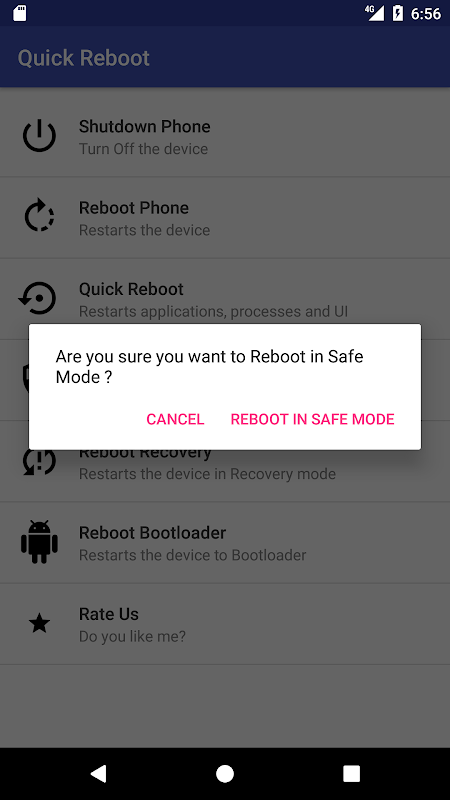 Quick Reboot helps you to reboot/ restarts your device quickly! You can: