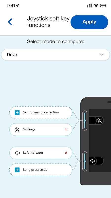 Aplicação de programação Permobil QuickConfig para cadeiras de rodas motorizadas