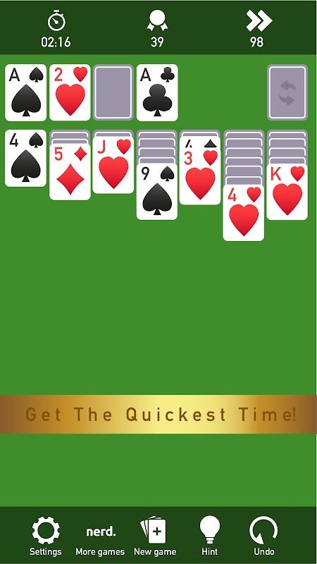 Simple, quick Solitaire game designed for train journeys and quick sessions.