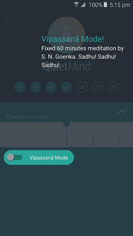 temporizador meditação para a meditação silenciosa, com opção para Vipassana de 60 minutos sit por S. N. Goenka.