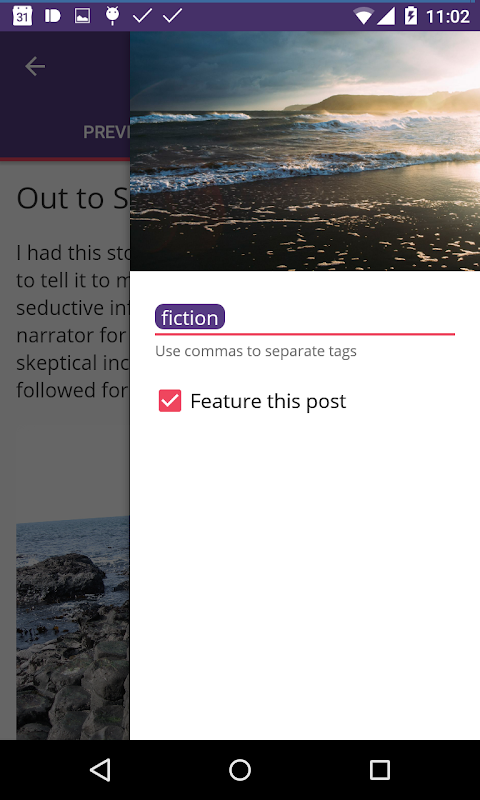 • Simple, intuitive interface based on Material Design principles and Ghost's web interface (along with some tasteful animations!)