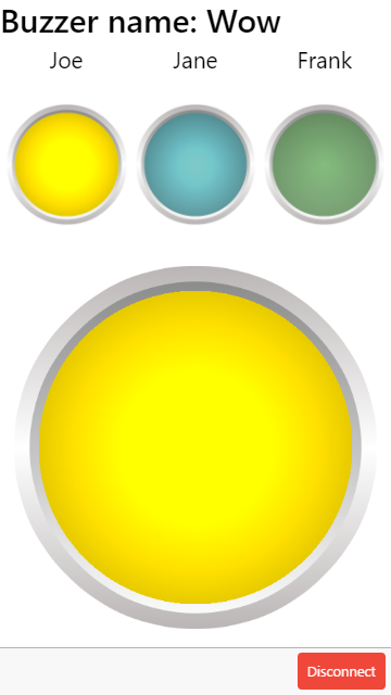 Em cada tela você pode ver que tem sido o mais rápido e quem é luz buzzer está ligado. A luz campainha permanece acesa durante 2,5 segundos e durante esse tempo buzzer cliques são desativados. Depois que a luz buzzer desliga-se novamente e todo mundo pode clicar suas campainhas e ver quem é o mais rápido.