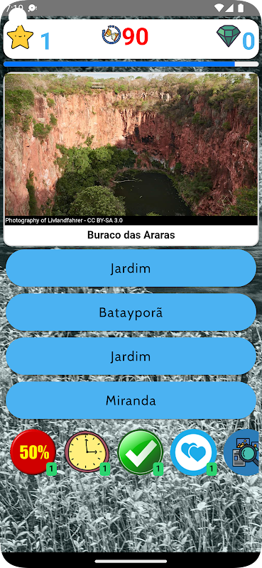 É um jogo de perguntas e resposta sobre as cidades. O jogo é bem simples, você deve responder qual cidade faz parte do Estado escolhido ou de qual cidade faz parte o Ponto Turístico da foto. Quem responde mais rápido ganha mais ponto. O máximo de pontos que se pode ganhar por pregunta são 100 pontos e ao errar, se perdem 30 pontos.