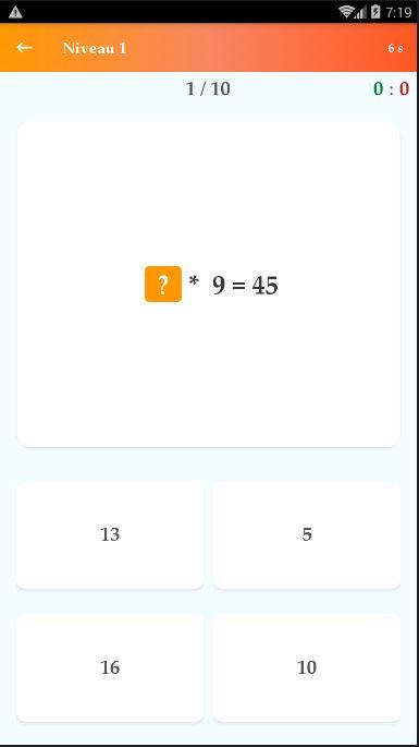 Cette application gratuite vous permet d'apprendre facilement les tables de multiplications à travers des quiz et jeux (Duel quiz et jeux de niveaux).