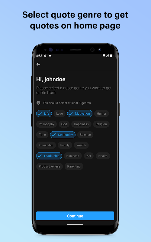 Quotegram é um aplicativo para criar, explorar e compartilhar cotações. Você pode criar um perfil para compartilhar suas cotações, ou mesmo não logando, você pode explorar muitas cotações por aí. Você pode seguir gêneros específicos, usuários para obter cotação em sua página principal.