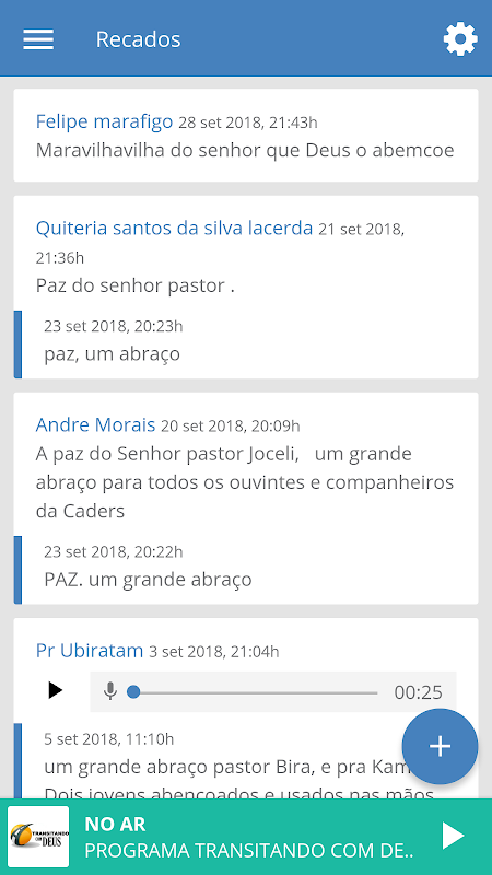 - Enviar recados em texto e áudio