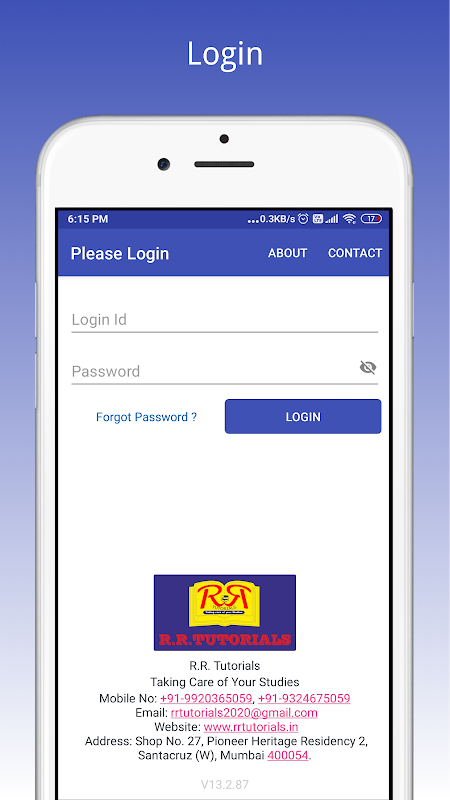 A RR Tutorials é o Premier Coaching Institute for School Seção: 1º ao SSC, Seção de Comércio: XI, XII e Cursos de Vários Graus, Seção de Ciências: XI, XII, MHT-CET, JEE, NEET e Cursos Profissionais: CAFC, Inter CA, Final CA.