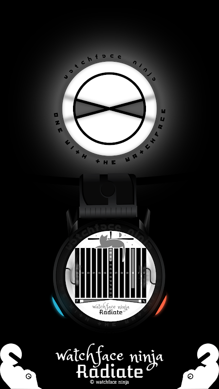 Radiate é um watchface exclusivo com uma maneira muito criativa de exibir tempo e informações. Eu tive a ideia do watchface enquanto observava a gata Mac curtindo as estrelas pela janela ou talvez ela estivesse apenas dormindo no radiador, mas de qualquer forma, o watchface foi criado. Apresentando pela primeira vez uma nova visão ninja™ para mostrar rótulos através dos ponteiros do relógio e barras de preenchimento e esta edição tem um ambiente dinâmico que irradia.