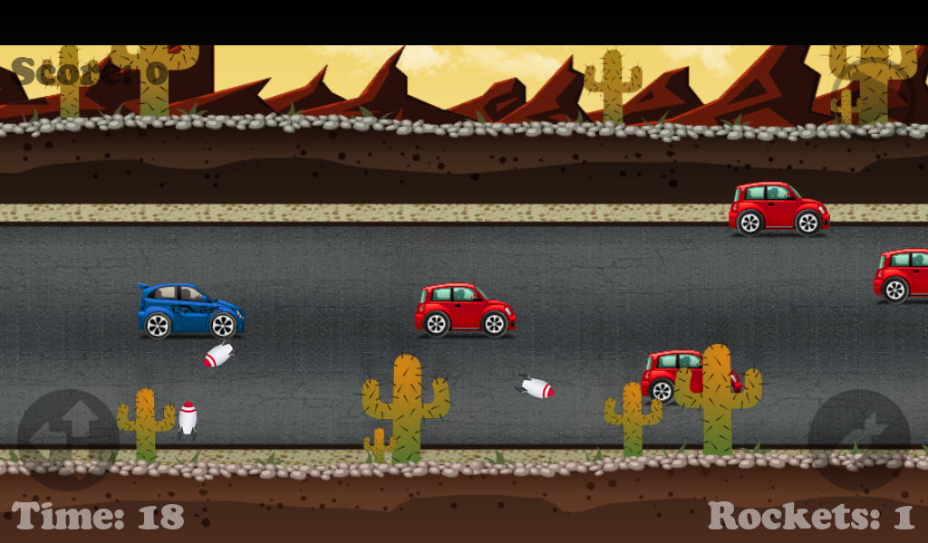 Raging Rocket Car, The most addictive and funny Car Game. Collect rockets on the road and then press fire button to launch a rocket to explode enemy car. Also you need to collect gas or the game will be over. Avoid collisions with other cars. Enjoy!