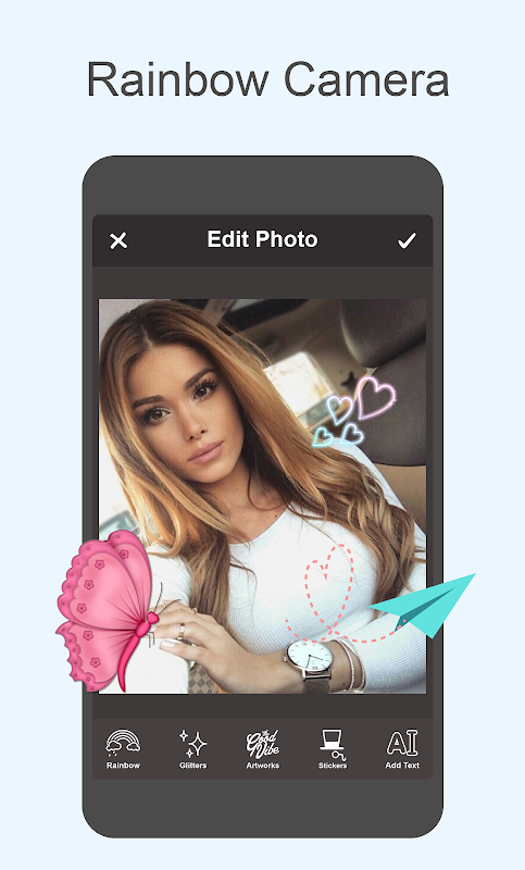 Rainbow Camera é o melhor aplicativo de editor de fotos que trouxe bastante arco-íris, adesivos sombra e filtros de cor para decorar seus momentos da vida.