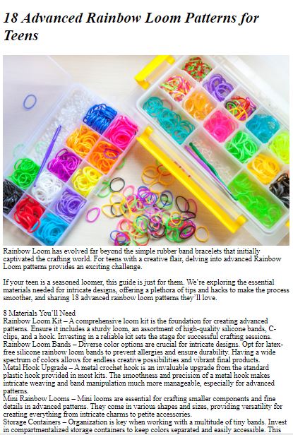 Tecelagem Básica: Explique a técnica básica de tecelagem usada para criar pulseiras Rainbow Loom, orientando os leitores através do processo de amarrar elásticos sobre os pinos em uma ordem específica.