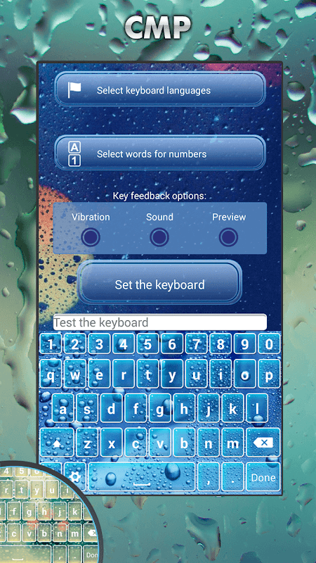 - Volte para o aplicativo e selecione "Definir o teclado para Padrão" botão, e escolha a opção Temas de Teclado Chuvoso.