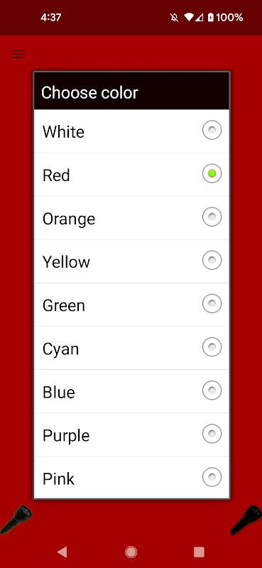 A primeira lanterna que funcionou com o novo Android 1.5 "Cupcake". Sem sinos extravagantes, apenas uma lanterna com uma seleção de cores e 2 níveis de brilho.